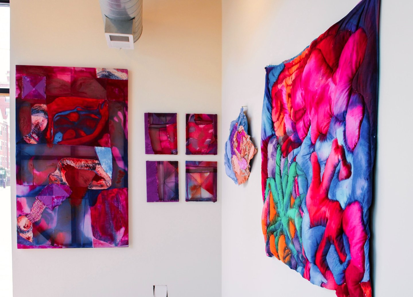 Luckily for the artist, her previous experience working with fibers and a work-study position in the school’s fibers department offered her the ability to see the potential of the material as a creative vehicle. Encouraged by the work of her peers, PRISMA began experimenting independently with dyes and prints, and found that through fiber, she was able to break free of painting’s constraints.