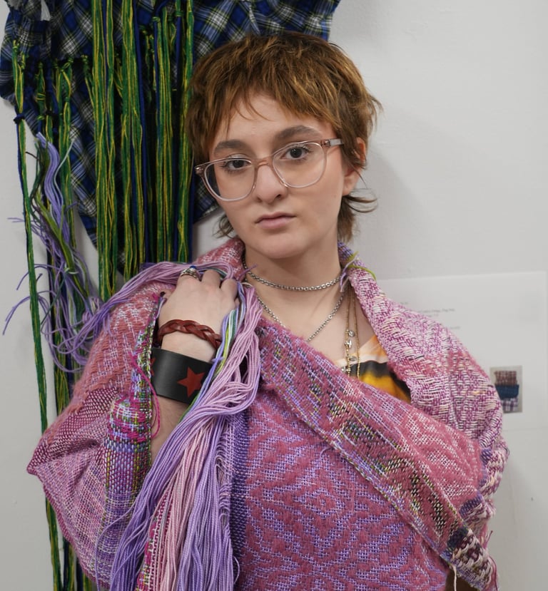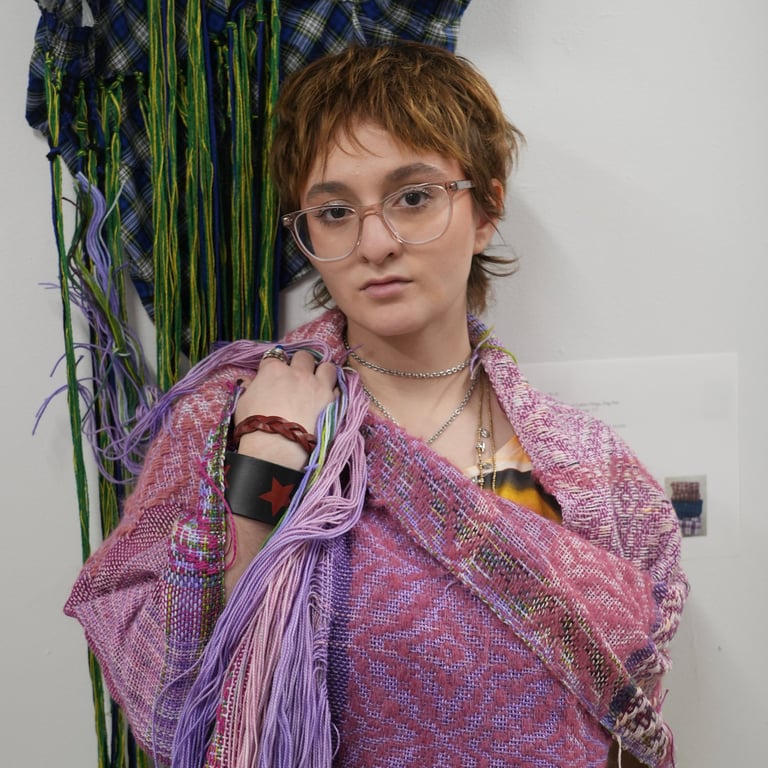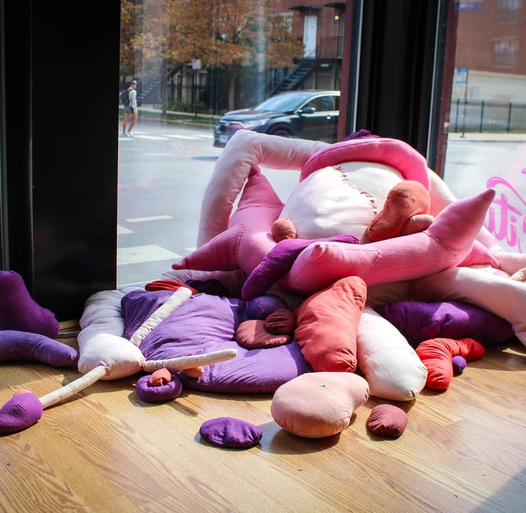Anna Maria Andrade, artistically known as PRISMA, is a Chicago-based mixed media artist. Born to a Honduran-Spanish father and an American mother, PRISMA combines her classic painting training with an emerging textile practice to create vibrant moments of intimacy and identity with fabric, dye, and plush. She attended Booker T. Washington High School for the Performing and Visual Arts in Dallas, Texas and will complete her BFA at the School of the Art Institute of Chicago in Spring 2026.