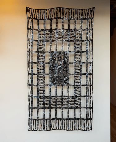 In Video Magic: 1996, Griffith’s work examines the intersection between memory and material. Pop culture doesn’t exist in the background of our lives for pure entertainment, instead the media we consume reflects who we are, how we process emotion, and what we value. In Video Magic: 1996, VHS tapes become quilts and fictional stories blur into lived realities.