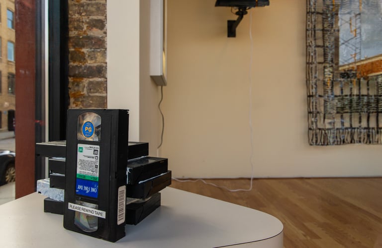 For her October 2025 solo exhibition Video Magic: 1996, Rebecca Griffith activated Art City’s mair gallery with video rental ephemera. For the millennials among us, the inherent nostalgia bound to the physicality of VHS tape transports us to our childhood. For Griffith, the material is a direct reference to growing up with and eventually becoming the caretaker of her mother, who ran a video rental store in the early 1990s named Video Magic.
