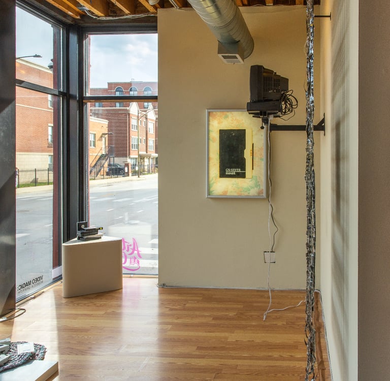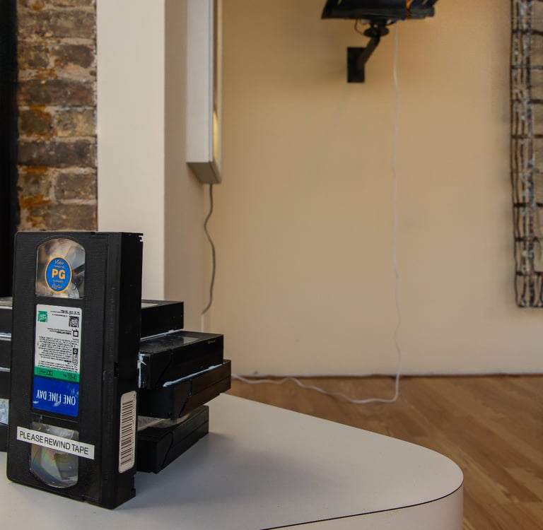 For her October 2025 solo exhibition Video Magic: 1996, Rebecca Griffith activated Art City’s Monthly Installation Artist Residency Gallery with video rental ephemera. For the millennials among us, the inherent nostalgia bound to the physicality of VHS tape transports us to our childhood. For Griffith, the material is a direct reference to growing up with and eventually becoming the caretaker of her mother, who ran a video rental store in the early 1990s named Video Magic.