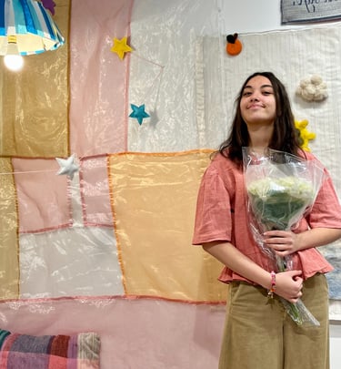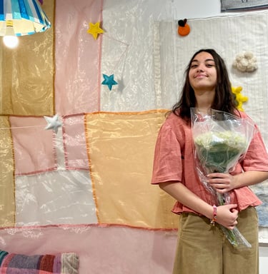Grounded in research around sensory experience and psychological well-being, Nehir creates environments and objects that function as vessels for exploring emotion, vulnerability, and healing. Alongside her studio practice, she is preparing to pursue a degree in Social Work, intending to work in mental health settings that integrate direct support, advocacy, and community care. Through both fiber arts and illustration, she bridges creative practice and mental health advocacy, using visual language to foster dialogue, belonging, and collective resilience.