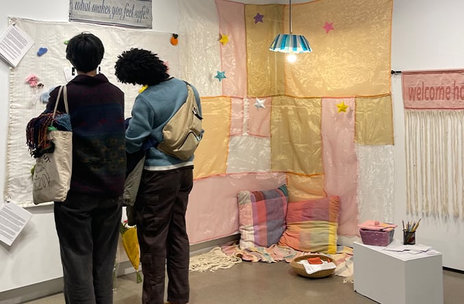 NU: Holding Space will present interactive fiber works, soft objects, weavings, and open-ended journaling prompts that invite visitors to engage in reflection. The exhibition is designed less as something to move through quickly and more as something to inhabit. Through tactile surfaces and opportunities for engagement, the show will frame fibers not only as a medium of comfort, but also as a tool that can support grounding and healing.