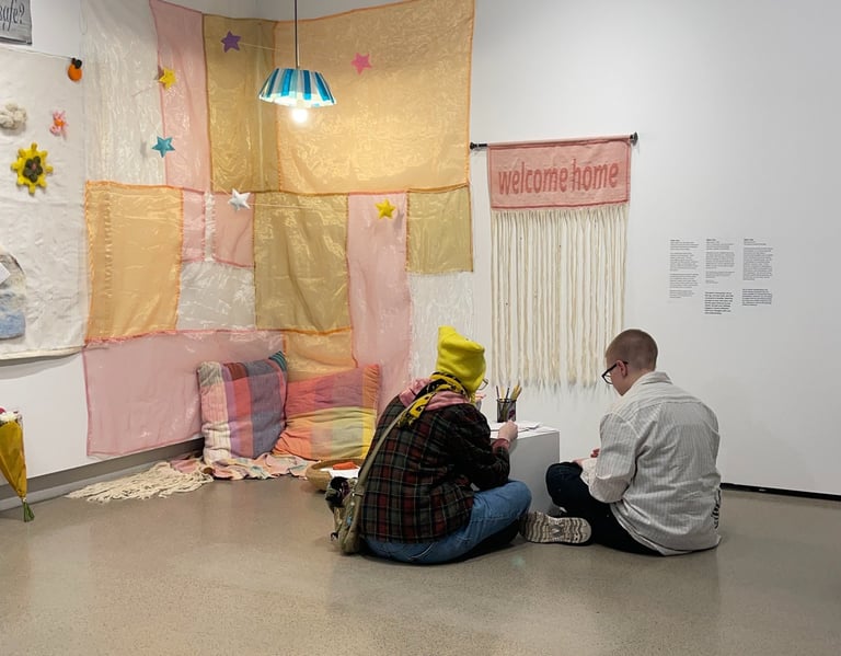 My work responds to this grief and longing by creating symbolic homes. These environments are not meant to replace real homes, but to act as a physical reminder: that care is possible, connection exists, healing is not out of reach, and that alternate realities and ways of living can be imagined.